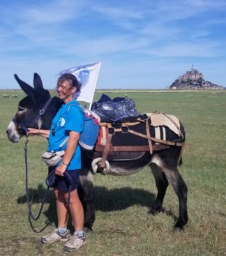 Étant moi-même sous traitement pour un cancer du sein depuis plusieurs années, je n’ai pas la force physique nécessaire pour porter un sac à dos sur une très longue distance. J’ai tout de suite su que l’âne serait le compagnon idéal pour réaliser ce genre de projet. Ce n’est pas tant pour porter mes affaires que je l’ai choisi, que pour sa sensibilité, son intelligence, ses qualités de médiateur et bien sûr son endurance. Et j’ai eu la chance de trouver un bon ‘compagnon de route au nom prédestiné de « Yalla », ce qui veut dire « En avant ! ».